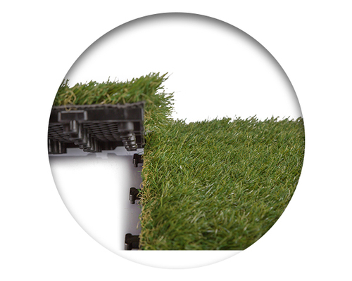 Start by placing an Interlocking Tile in the corner of the area that you want to cover, making sure the two sides of the tile with the tabs showing are facing outwards in the direction you will be laying the tiles. Place the edge of the next tile without the tabs showing over the black connecting tabs so these tabs lock into position with the corresponding slots on the underside of the second tile. Repeat this simple "lock in place" process with the remaining tiles, working in a diagonal direction across your entire design.