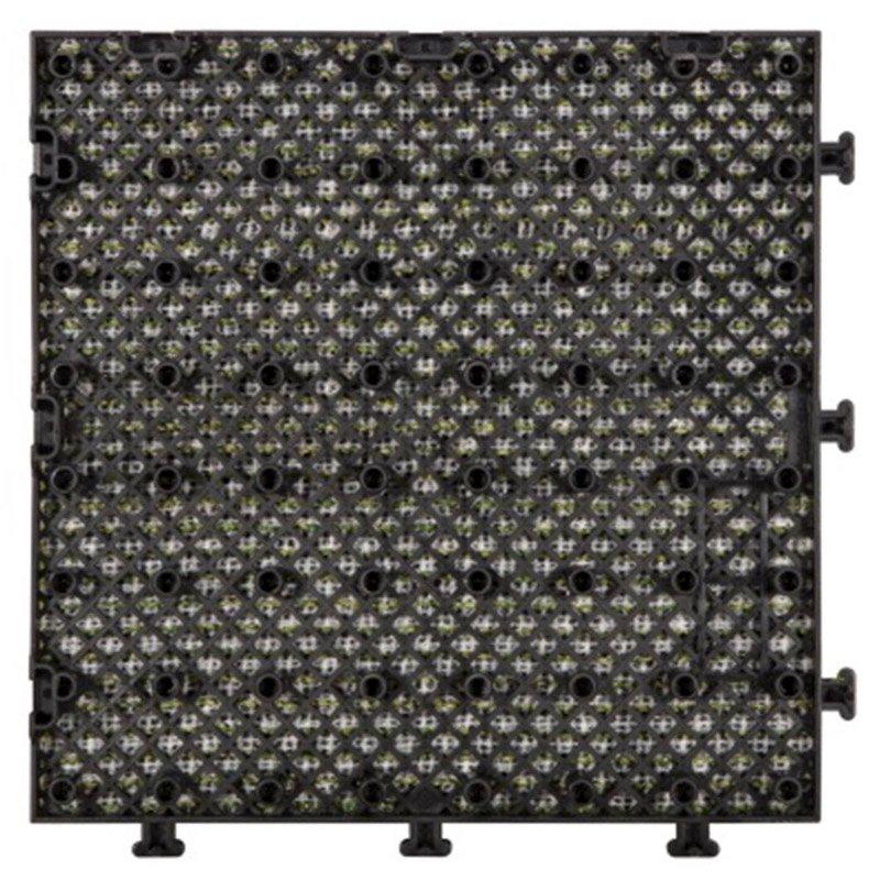 Start by placing an Interlocking Tile in the corner of the area that you want to cover, making sure the two sides of the tile with the tabs showing are facing outwards in the direction you will be laying the tiles. Place the edge of the next tile without the tabs showing over the black connecting tabs so these tabs lock into position with the corresponding slots on the underside of the second tile. Repeat this simple "lock in place" process with the remaining tiles, working in a diagonal direction across your entire design.