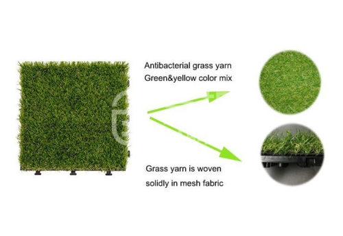Top material Grass yarn PP+PE with backing glue SBR latex; backing is PP + mesh fabric.